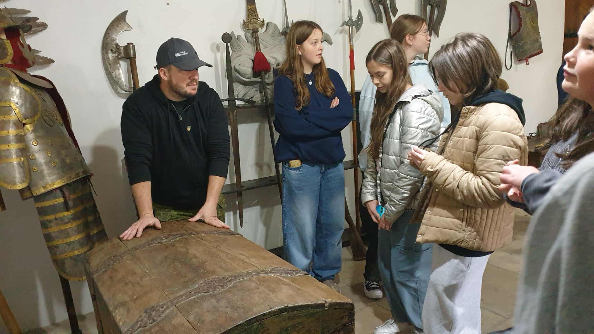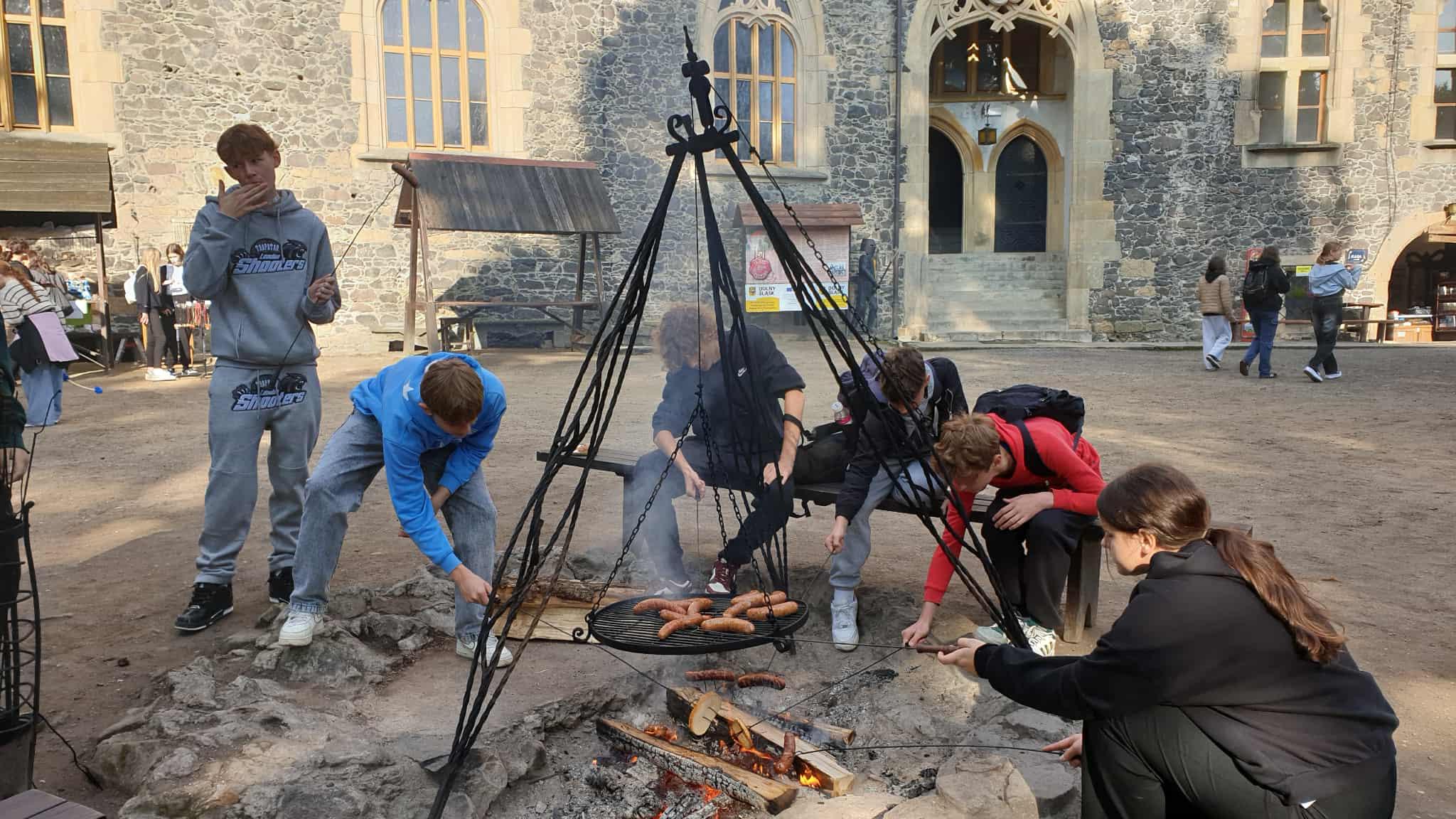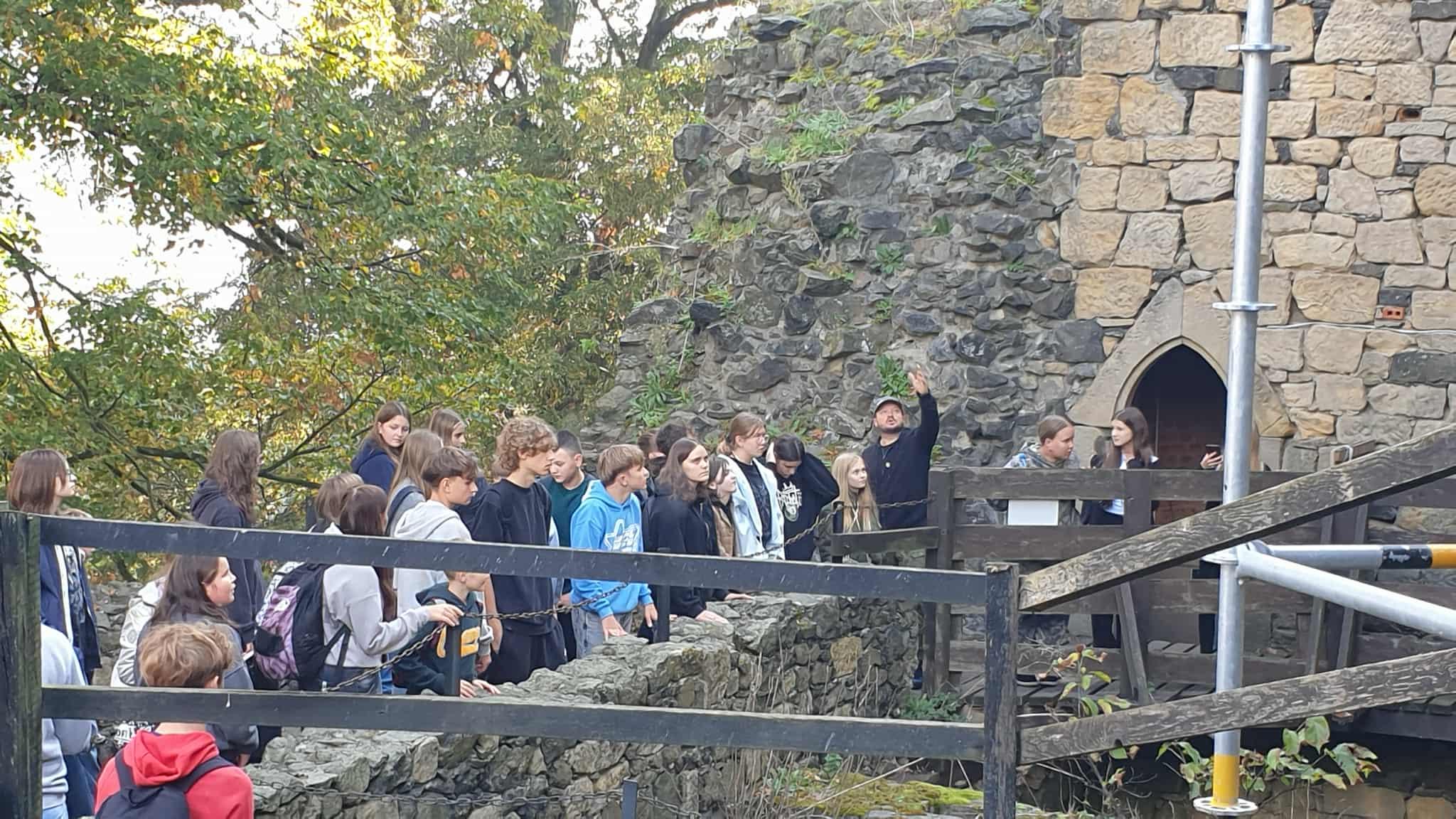 Pierwszym punktem było zwiedzanie malowniczego Zamku Grodziec, położonego na wygasłym wulkanie. Przewodnik opowiedział wiele ciekawych historii i legend, a uczniowie zobaczyli m.in. dziedziniec, rycerskie komnaty oraz basztę widokową. Po zwiedzaniu odbyło się wspólne ognisko z kiełbaskami.