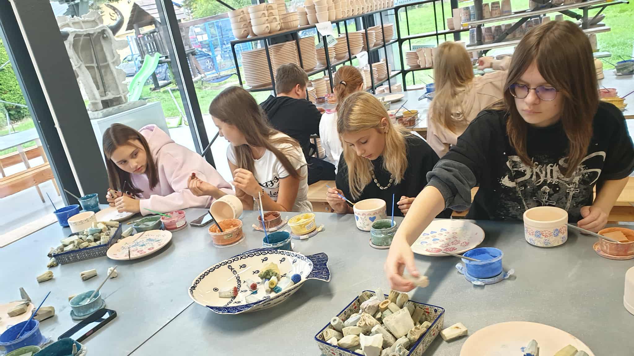 Następnie odwiedziliśmy Manufakturę Ceramiki w Bolesławcu. Podczas warsztatów każdy mógł ozdobić własne naczynie i poznać proces powstawania słynnej bolesławieckiej ceramiki – od formowania, przez wypalanie, po zdobienie.