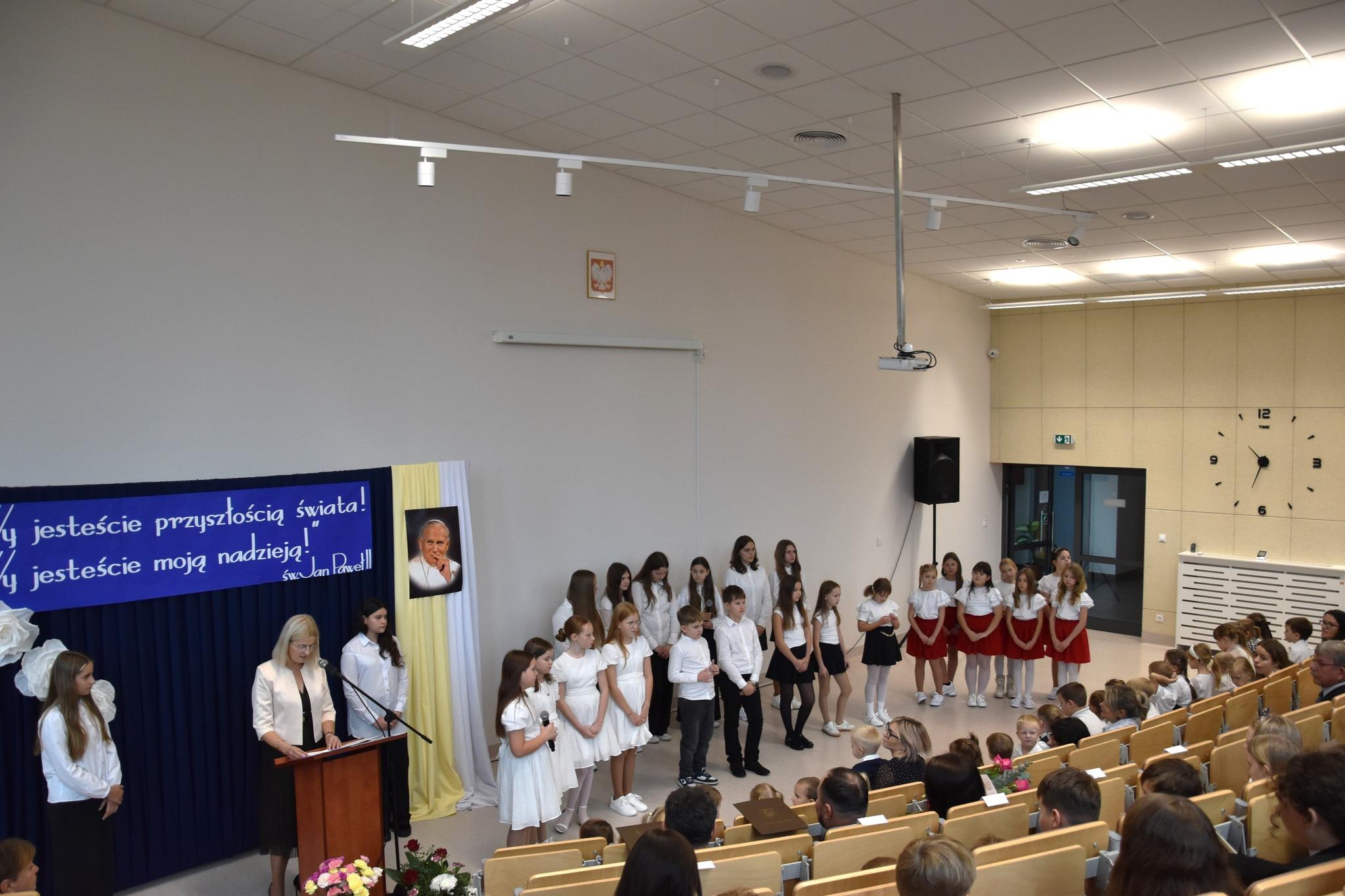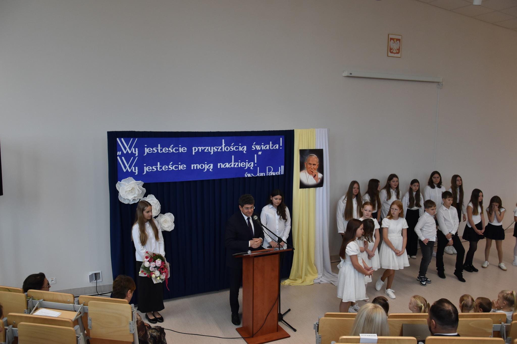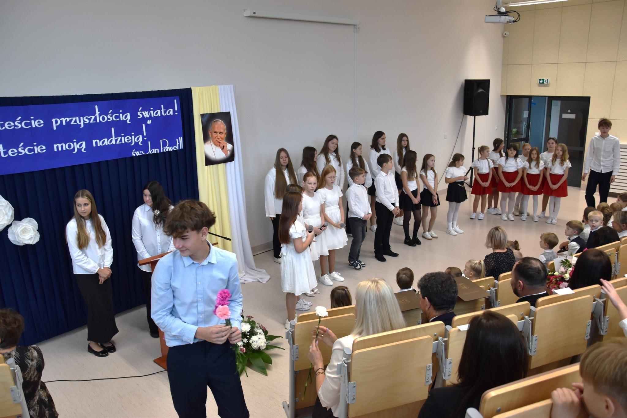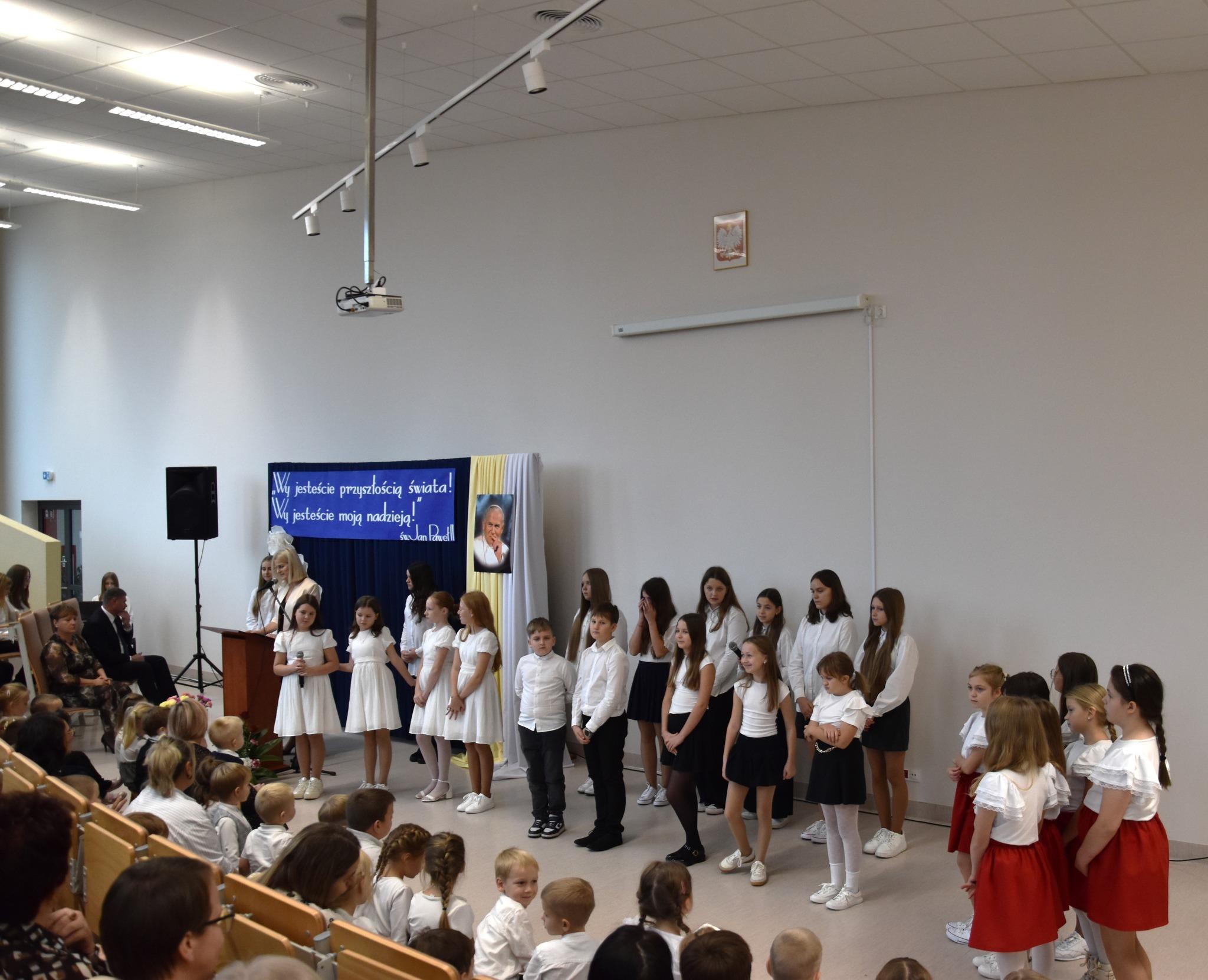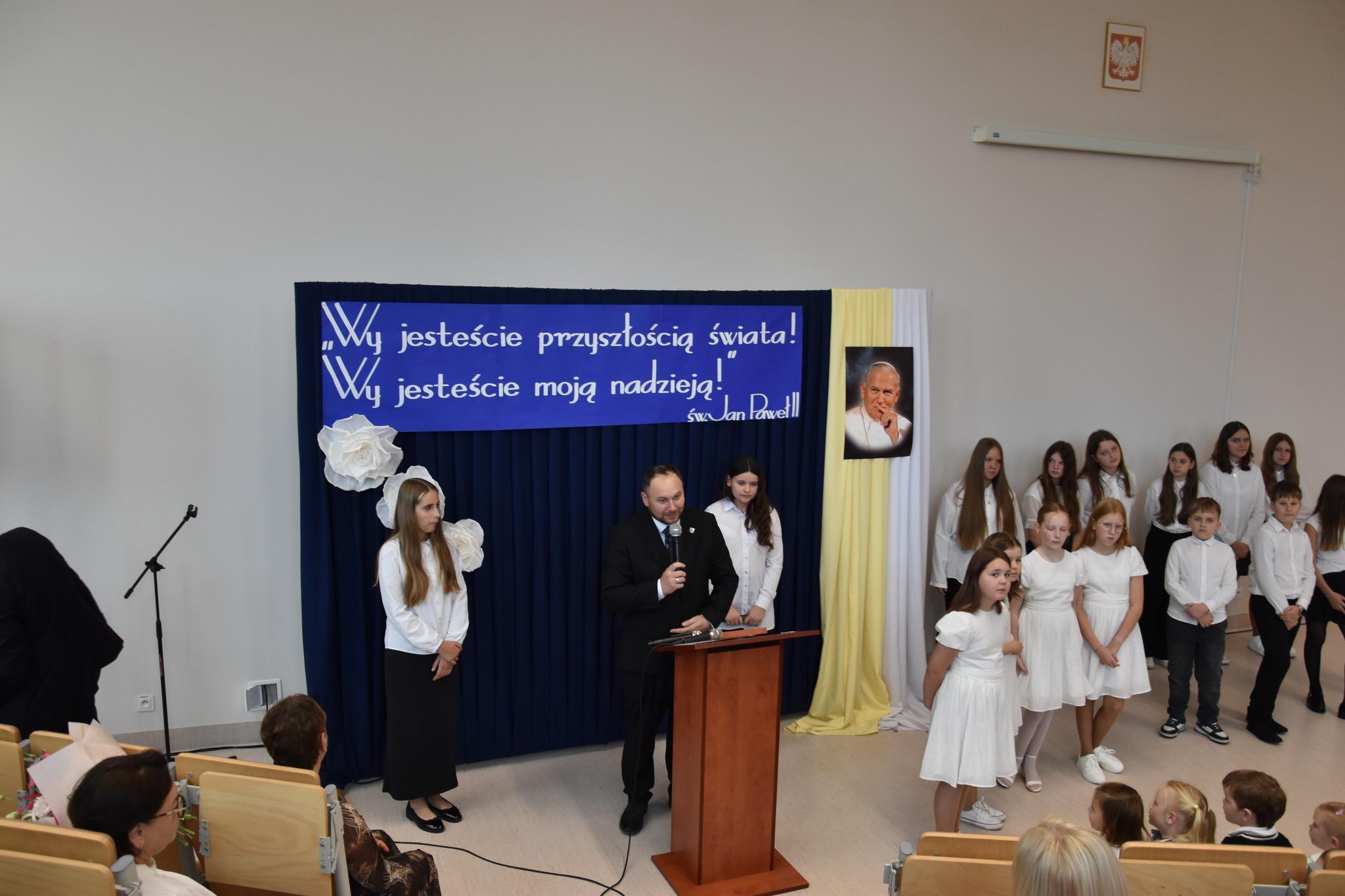14 października 2025 r. obchodziliśmy Dzień Edukacji Narodowej i Święto Patrona Szkoły – Ojca Św. Jana Pawła II. W tym wyjątkowym dniu dzieci i młodzież przedstawiła montaż słowno-muzyczny poświęcony Św. Janowi Pawłowi II. Z okazji Dnia Edukacji Narodowej uczniowie złożyli serdeczne życzenia wszystkim nauczycielom, oraz pracownikom. niepedagogicznym. Pod tablica pamiątkową Patrona Szkoły złożyliśmy kwiaty.