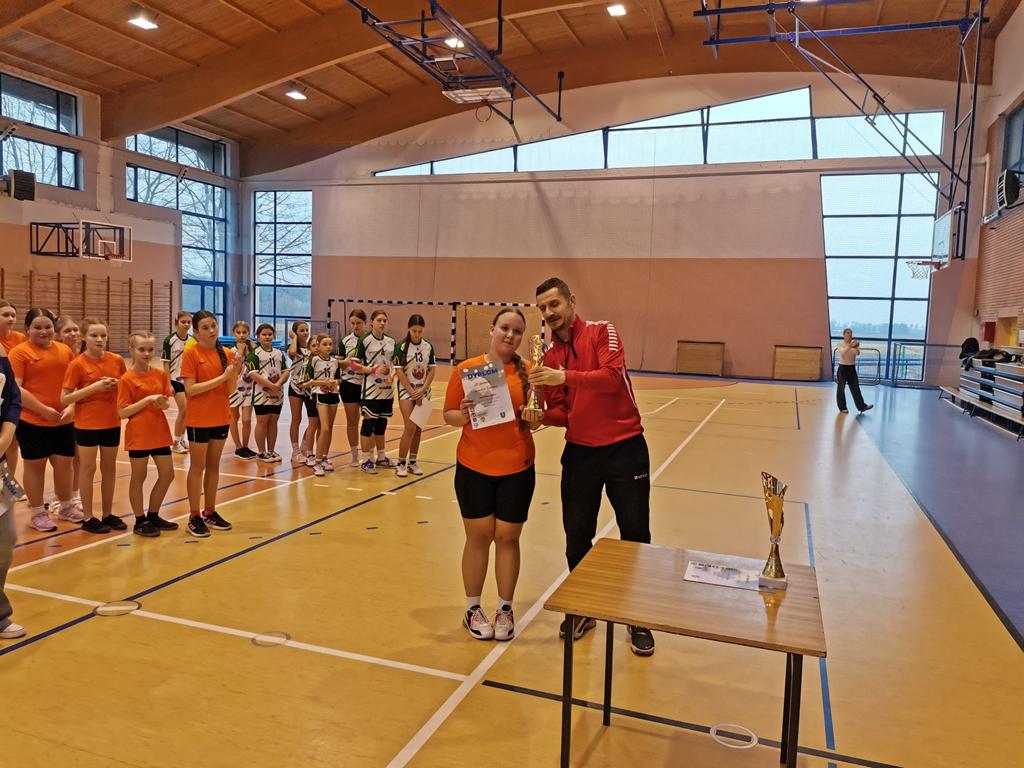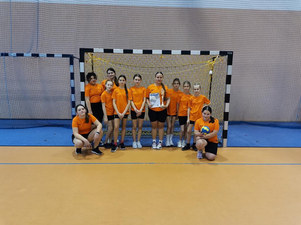 Nasze piłkarki w pierwszym meczu pokonały uczennice z Chocza 6 : 1, w drugim meczu przegrały z rówieśniczkami z Dobrzycy 1 : 6, a w ostatnim meczu grupowym pokonały dziewczęta z Pleszewa 3 : 0. W meczu półfinałowym szczypiornistki z Gizałek pokonały piłkarki z Czermina 3 : 2. W grze o pierwsze miejsce uczennice z Gizałek przegrały z Dobrzycą 2 : 5, zajmując drugie miejsce, zdobywając wicemistrzostwo powiatu w piłce ręcznej.