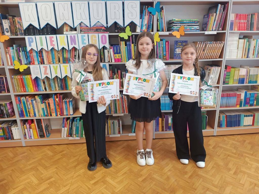 Naszą szkołę reprezentowały Laura Kaźmierska, Gabriela Szymkowiak oraz Dagmara Lewicz z klasy 3. Dzięki swojej wrażliwości czytelniczej, staranności oraz umiejętnej interpretacji tekstu zakwalifikowały się do etapu powiatowego.